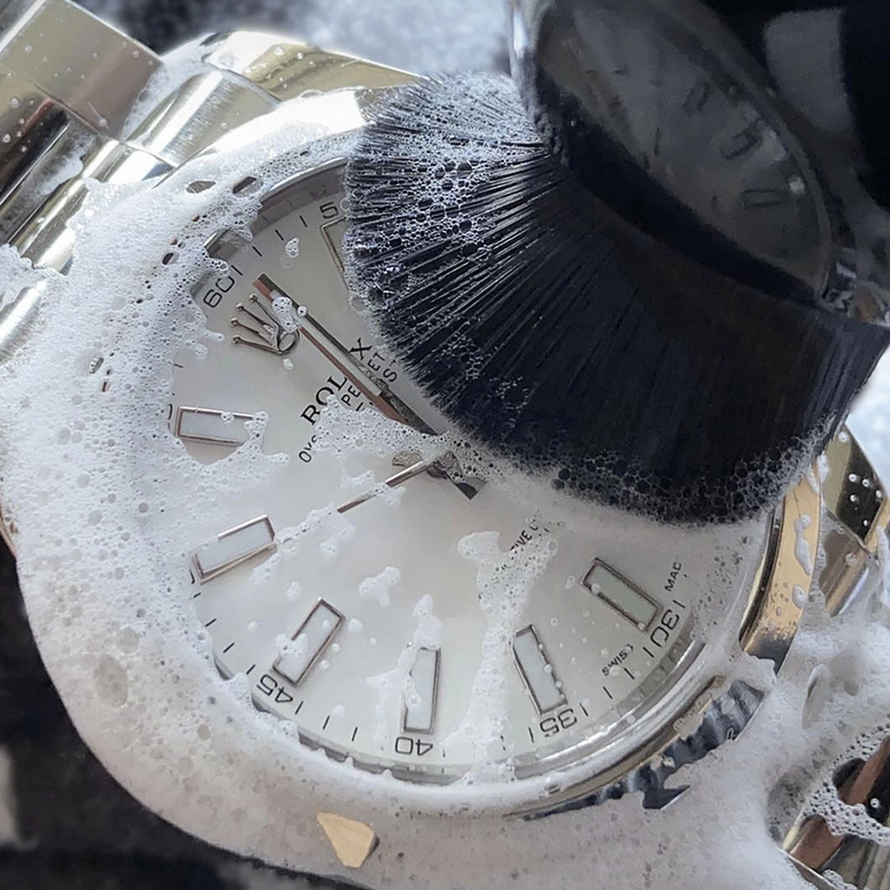 Properly cleaning a timepiece can be a delicate process. The ChronoPen from AIS makes it easy. The all-in-one tool houses 30ml of specially-formulated, Swiss Made cleaning solution and has a soft brush head with extra-fine bristles to remove dust and dirt from even the smallest of cracks and crevices. Made without any harsh chemicals or abrasives, it’s safe for use on stainless steel, gold, platinum, bronze, carbon fiber, and ceramic as well as other parts made of sapphire crystal, diamonds, and rubber. Also included is a polishing cloth for drying and further enhancing the cleaning of the watch.