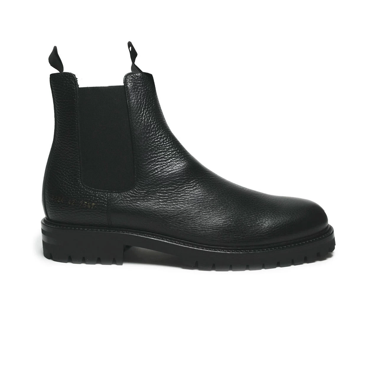 Known for its minimalist designs, Common Projects elevates timeless silhouettes with high-end materials and craftsmanship. These Chelsea boots are no exception. Made in Italy, they have black, full-grain leather uppers with tonal elasticated inserts and pull tabs that make it easy to slide them on and off. Chunky rubber-lug soles provide excellent traction in poor conditions, and the gold stamped 2324 style/size/color number adds an upscale finish.