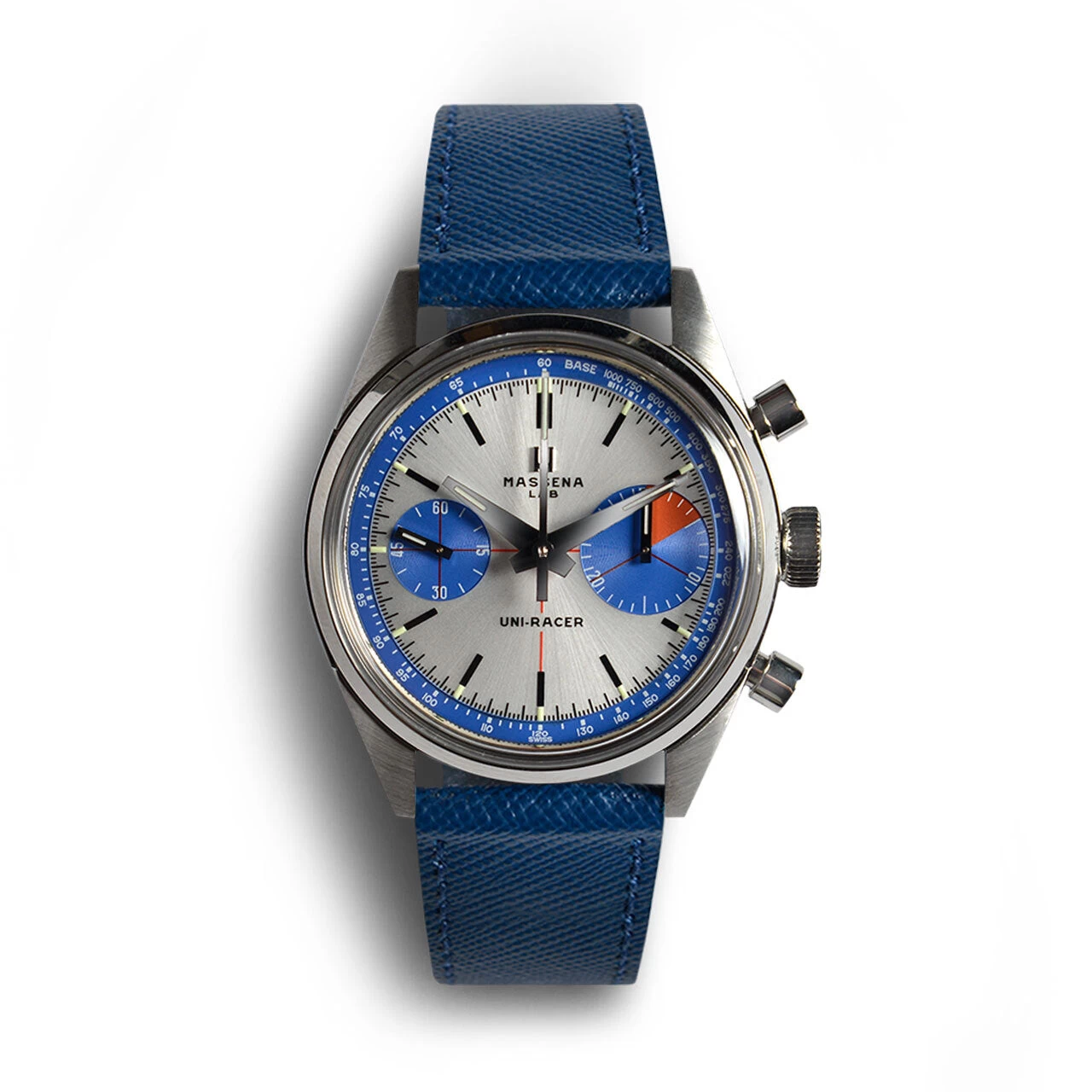 While it only had a short run in the 1960s, the Universal Genève Uni-Compax has inspired plenty of modern-day watchmakers. The most notable of which is Massena Labs, whose take on the mid-century classic is one of the most appealing chronographs available today. The Uni-Race Rally leads a trio of new watches, featuring a standout silver dial, blue contrasting details, and a red five-minute indicator located on the “Big Eye” counter. The chronograph is powered by manually wound Sellita SW510 M movement, with a 58-hour power reserve hidden beneath a solid steel case back. And a blue deerskin leather strap with a Massena LAB signature tang buckle in stainless steel seals the deal.