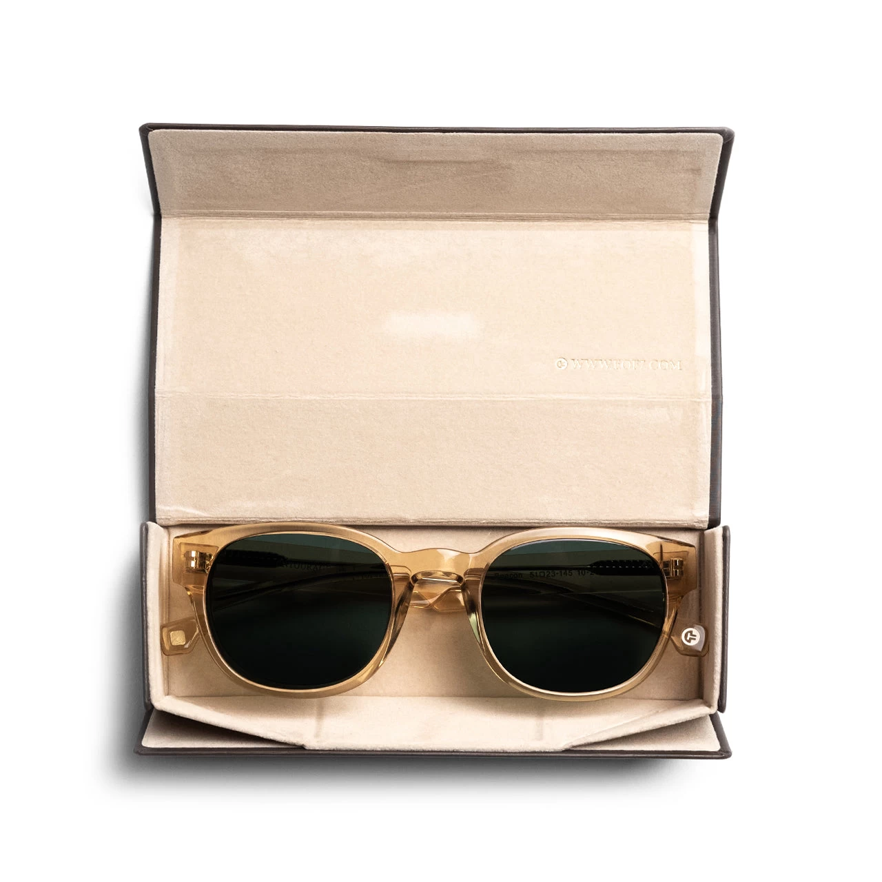 Seen on the face of Matt Damon in his role of Carroll Shelby in Ford vs. Ferrari, Entourage of 7’s Beacon 1020 sunglasses are a screen-worthy addition to your style arsenal. Not to be confused by imitators or knock-offs, the real sunglasses made by Entourage of 7 sport two dice showing the total number of 7 at each temple hinge. They’re also worn by Michael Douglas in The Kominsky Method, an example of their timeless versatility. An Uncrate Exclusive, they’re handmade in Japan of translucent Zyl acetate made from cotton and supported by titanium hinges with double rivets, then finished with nylon anti-reflective backcoated G-15 Green lenses. Each arrives with a leather case that folds flat for easy storage.