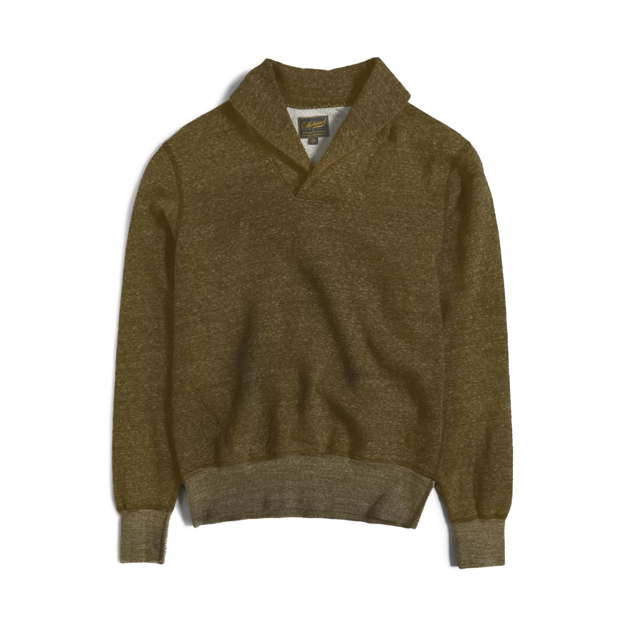 Using high-quality Japanese fabrics, National Athletic Goods takes a timeless basic and elevates it into an artisan piece. The Shawl Pullover gets its vintage-inspired design from mid-century campus and sports sweaters, resulting in a shawl collar, flat-locked seams, and contrast long ribbing on the hem and cuff. Constructed from Japanese loopback terry fleece, the material is made using Japanese yarn that’s been woven with a true mock twist mélange method, giving the sweater an extremely soft texture and speckle pattern along with a medium weight that can easily transition from fall to winter.