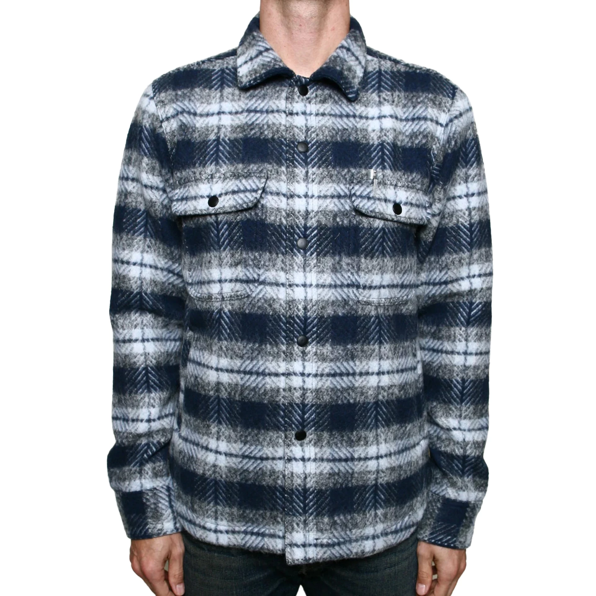 At first glance, it looks like a regular flannel. Look closer, and this plaid shacket is a full-fledged piece of outerwear. It’s crafted from warm Japanese mohair fabric, with thoughtful details like subtle hand-warmer pockets, dual chest flap pockets, contrast lining on the cuffs, flaps, and placket, and matte black snaps. Thanks to a slim fit, it also works well as a layering piece.