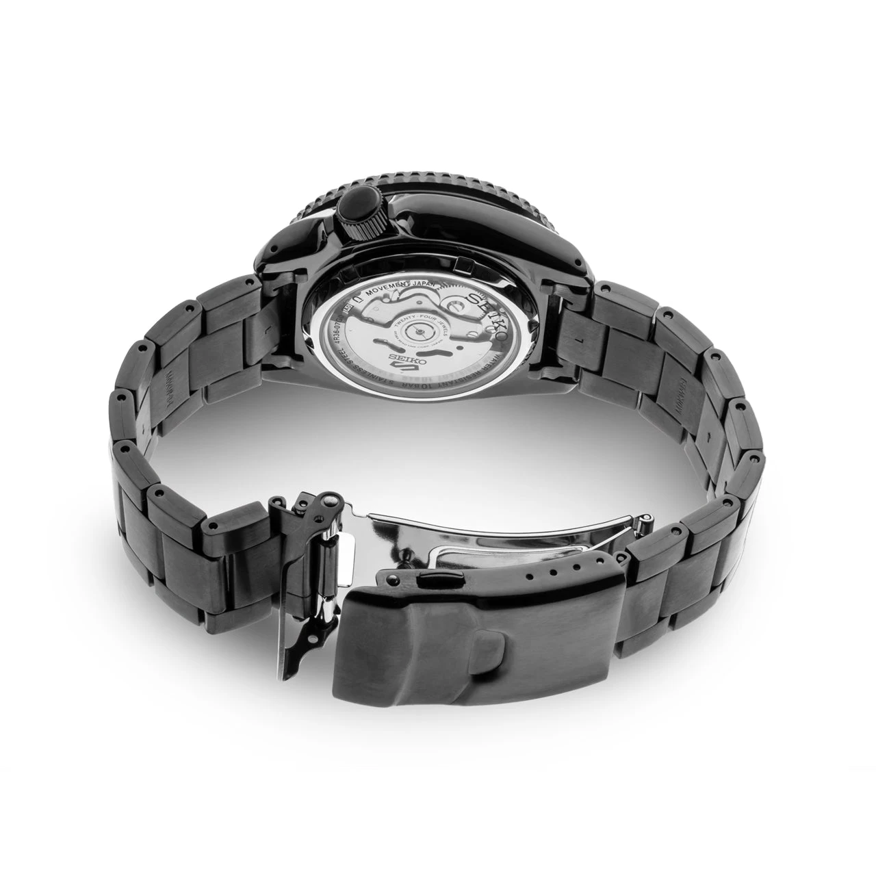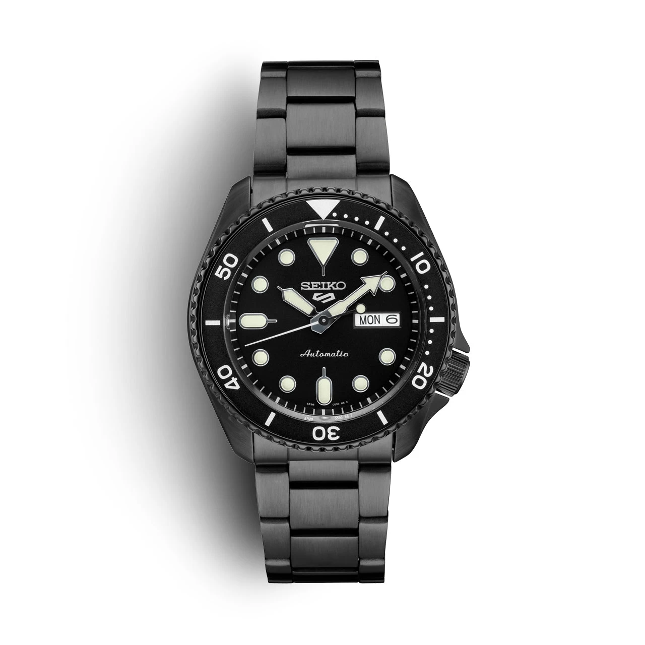 Elegant in its simplicity, the Sport 5 SPRD65 Automatic is Seiko at its best. An anodized black finish, bezel, dial, and three-row bracelet make the SRPD65 a stylish contrast for any occasion. The 24-jewel 4R36 movement features hacking and automatic or manual winding with a 41-hour power reserve. Luminous hands and markers are easy to read alongside a day and date window.