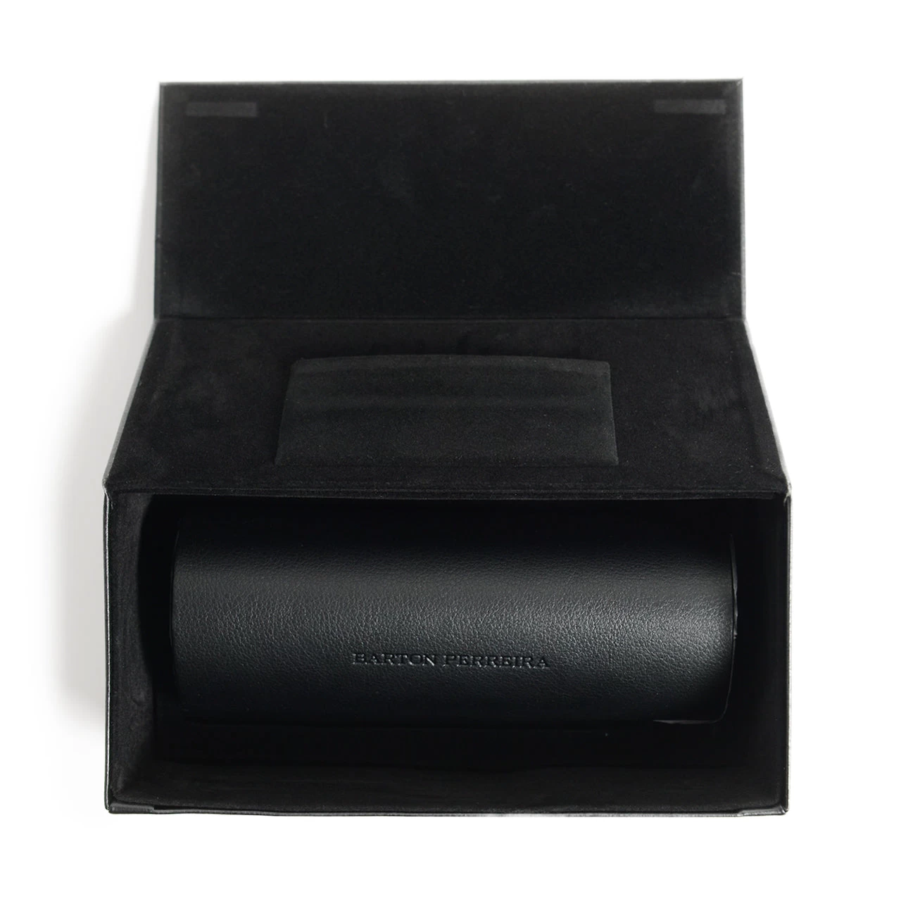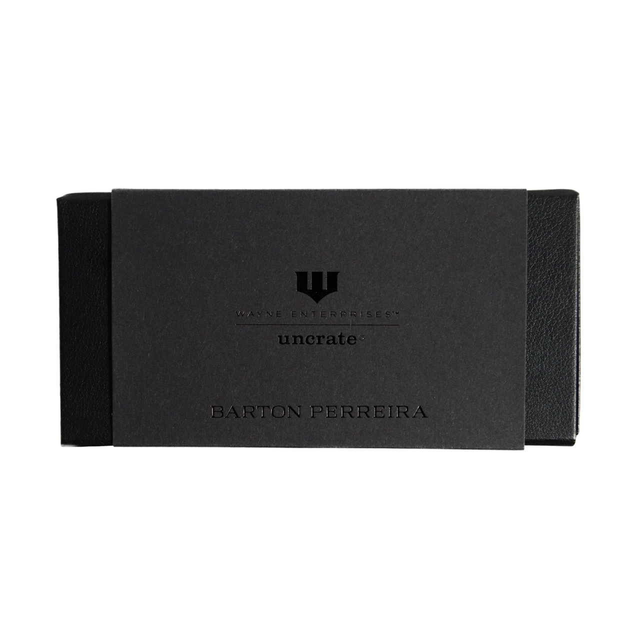 LA-based eyewear brand Barton Perreira has developed this classic rectangular silhouette sunglass dubbed the Damian exclusively for Wayne Enterprises and Uncrate. Named after Bruce Wayne’s son, the Damian features Barton Perreira’s signature Japanese acetate in translucent shadow grey frames with deep marine polarized and anti-reflective lenses or an absolutely flat matte black frame with dark nocturnal polarized and anti-reflective lenses. While the translucent shadow grey frames have more fashion-forward styling, the matte black frames are designed to ensure virtually no light is reflected off the frame itself for a more covert appearance. The glasses feature CR39 polarized lenses that have a “Vioff” backside anti-reflective coating that absorbs 95% of UV light compared to traditional AR coatings that only absorb about 57%. The Wayne Enterprise “W” logo is customized on the temple tip, and also covertly appears on the lens as a breath logo, only seen if the left lens is fogged. Each Damian frame comes with a custom co-branded Barton Perreira, Wayne Enterprises, and Uncrate pebbled leather presentation and storage box, sunglass case, cleaning cloth, and numbered authenticity card. Each pair is made by hand in Japan.